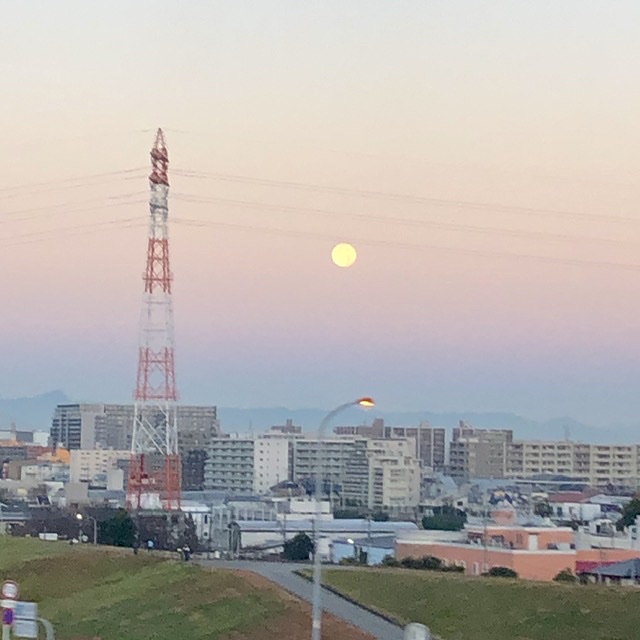 早朝のまんまるいお月さまって、なんだか夜に見るよりも神秘的な気がします。