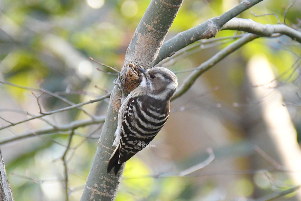 この公園では、コゲラちゃんの遭遇率が高くて、耳を澄ますとよく「コツンッ、コツンッ」という音が頭上から聞こえてきます。あちこちから聞こえてくるので、どこどこどこ?って迷うぐらいいます。