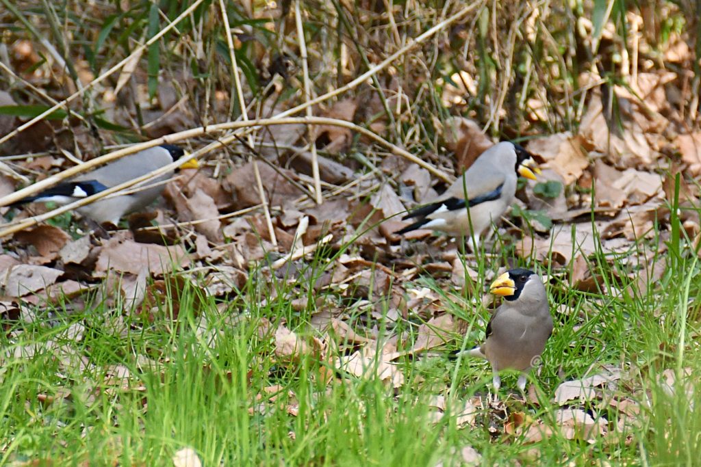 しばらく見ていると何羽か地上に降りてきて、食べ物を探しておさんぽを始めました。前回は高い木の上にいたので、地上にも降りてくるんだと、自分的に新たな発見。