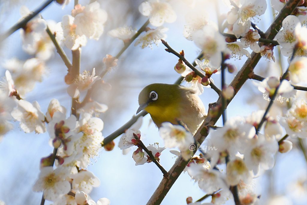 途中でメジロさんを見かけたのですが、梅園にはおらず。