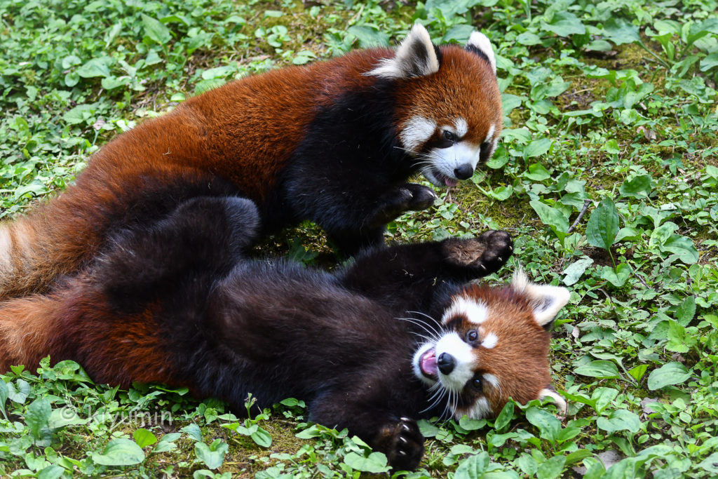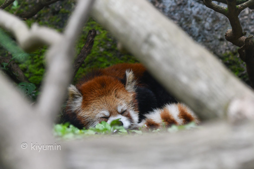 なんと丸太の上で、ど正面向いて毛繕いしたり、お昼寝したり…。